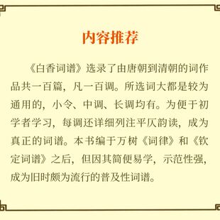 精粹 作品一百篇小令中调长调均有 白香词谱 词 古代诗词欣赏 原文注释译文口袋便携书精选国学名著唐朝至清朝 中华国学经典