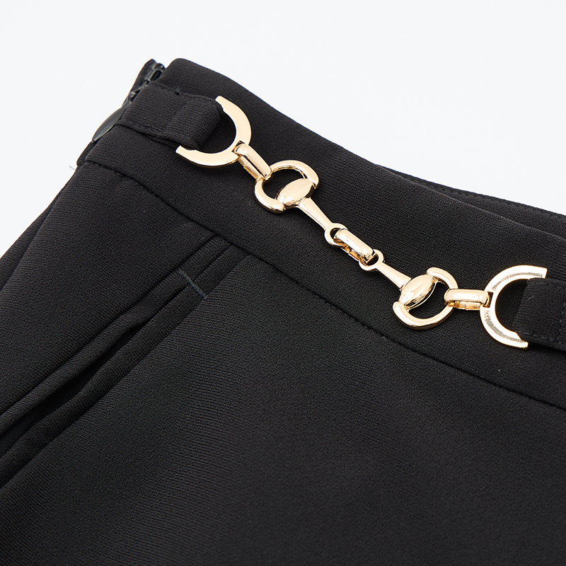 马天奴春夏新款 通勤女裤 黑色高腰西裤 链条时尚 子微喇长裤 专柜正品