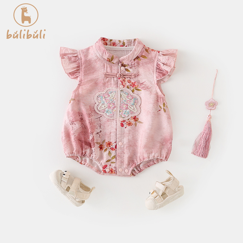 薄款 包屁衣夏季 满月百天三角哈衣潮 女宝宝新中式 国风婴儿衣服夏装