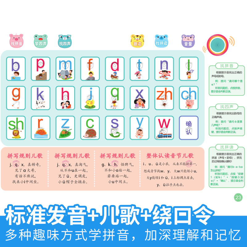 会说话 魔法拼音拼读训练幼小衔接学前拼音一年级儿童声母韵母早教有声书启蒙一点就会读手指点读发声书拼音学习神幼儿有声读物
