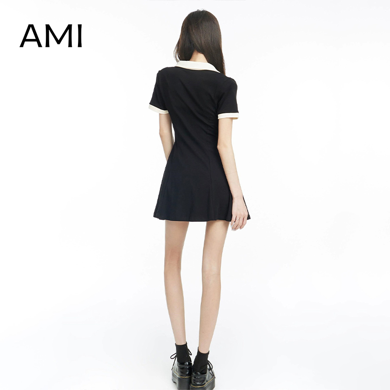 连衣裙女夏季 polo领短袖 新款 正品 显瘦辣妹A字裙 AMI 修身 2025美式