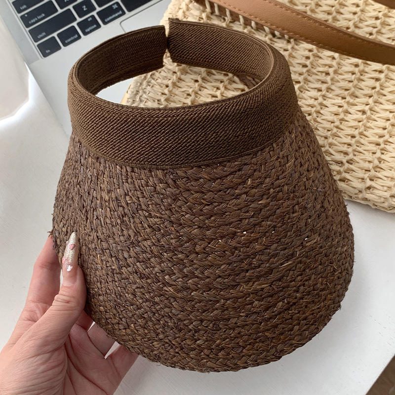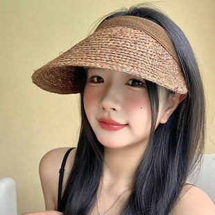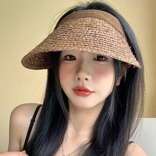 拉菲草空顶帽子女夏季 海边度假风手工编织草帽遮阳防晒帽太阳帽子