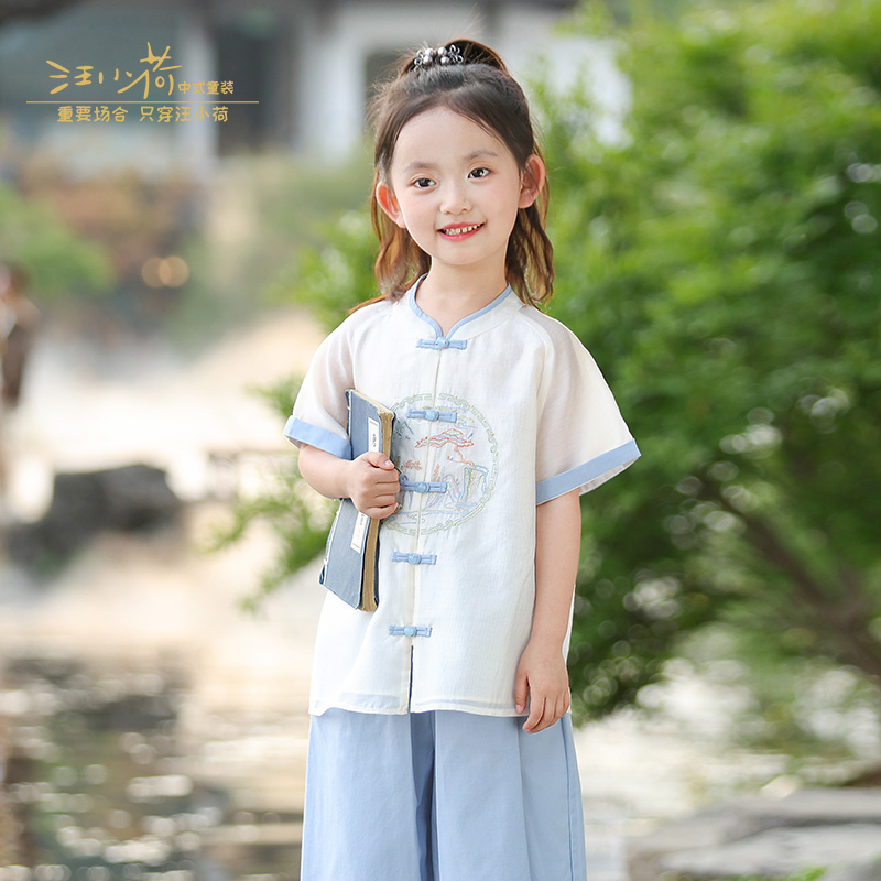 专柜同款 套装 汪小荷童装 男童中式 国风女童唐装 25夏新款