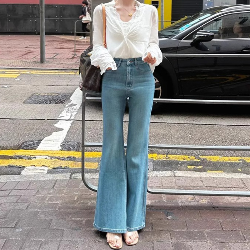 时尚 秋季 复古微喇裤 蓝色喇叭裤 504510 三福牛仔长裤 子女装 2025新款