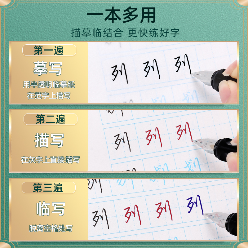 墨点行楷字帖成人练字荆霄鹏成年男士 临慕练字帖初高中生大学专用7000常用字初学者行书入门速成女生字体漂亮硬笔钢笔书法描摹练字