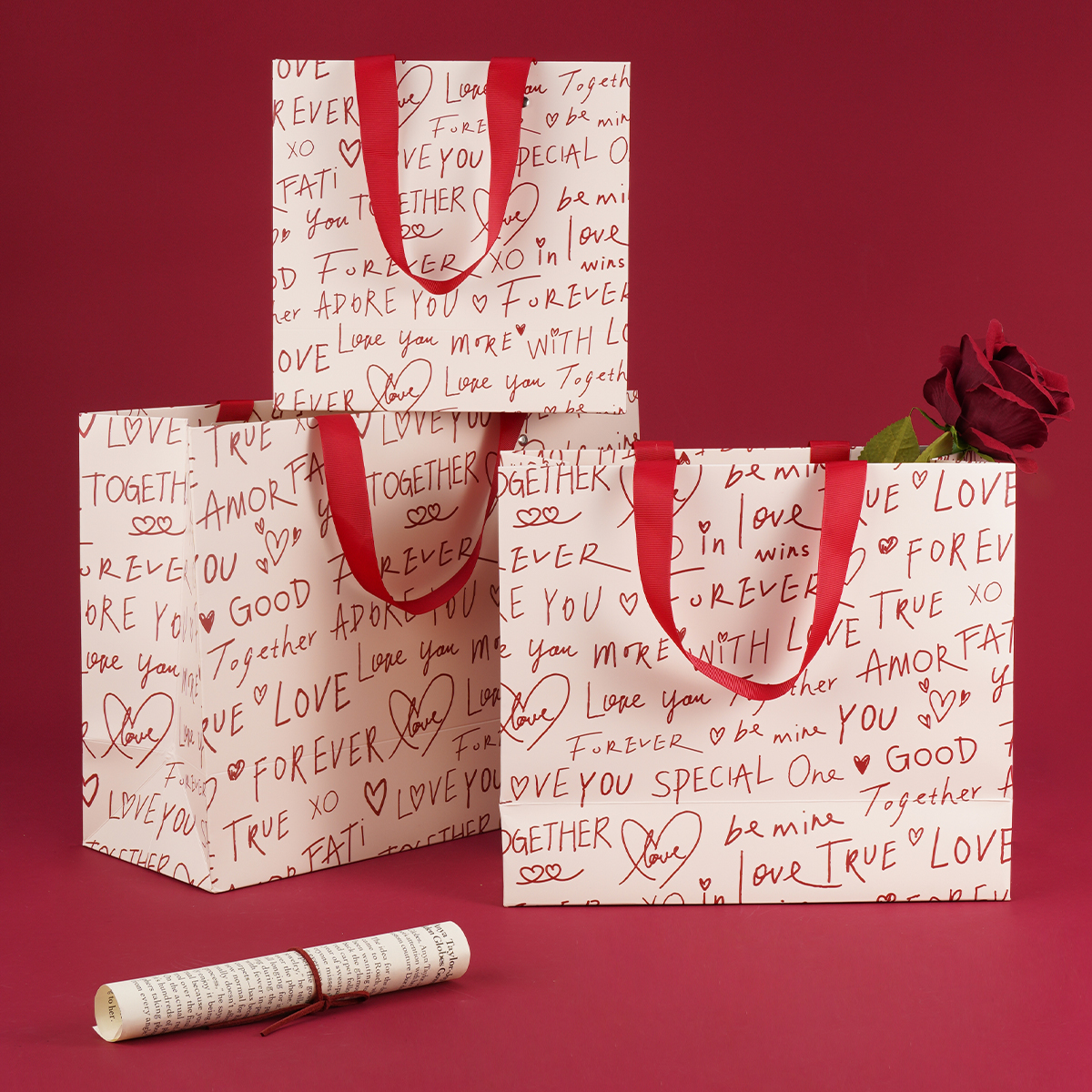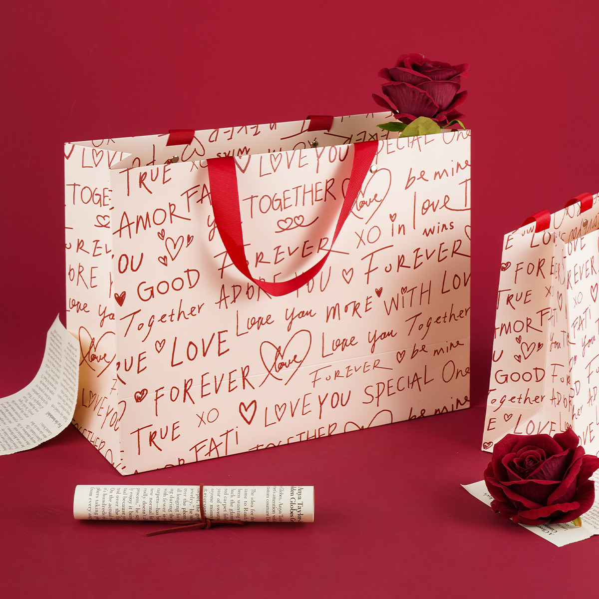 恋恋手记手写英文礼品袋手提袋圣诞情人节结婚生日伴手礼物包装 袋