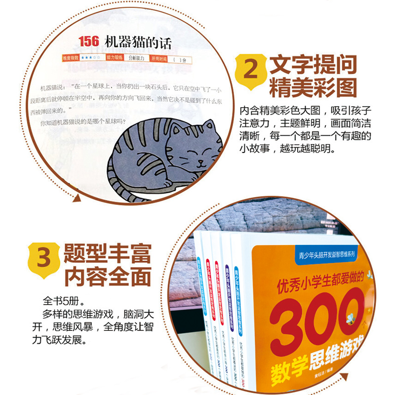 书 300个数学思维游戏逻辑思维游戏探案游戏儿童智力挑战 全5册优秀小学生都爱玩 500个脑筋急转弯优秀小学生都爱做
