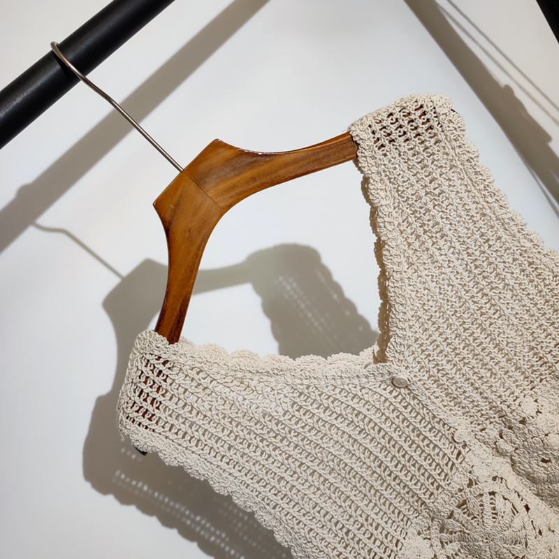 镂空花边纽扣针织衫 秋天叠穿马甲 吊带背心女内搭上衣外搭独特罩衫