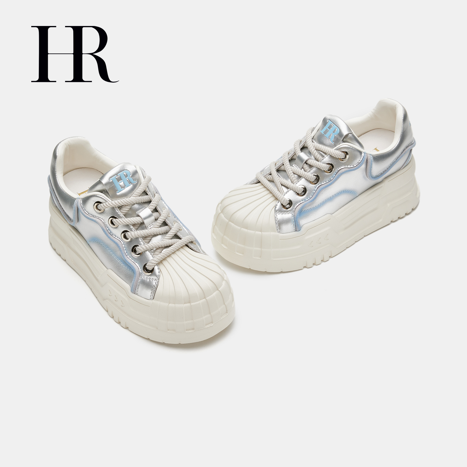 厚底贝壳头爆款 HR赫莲娜女鞋 休闲银色板鞋 新款 百搭透气 子2025秋季