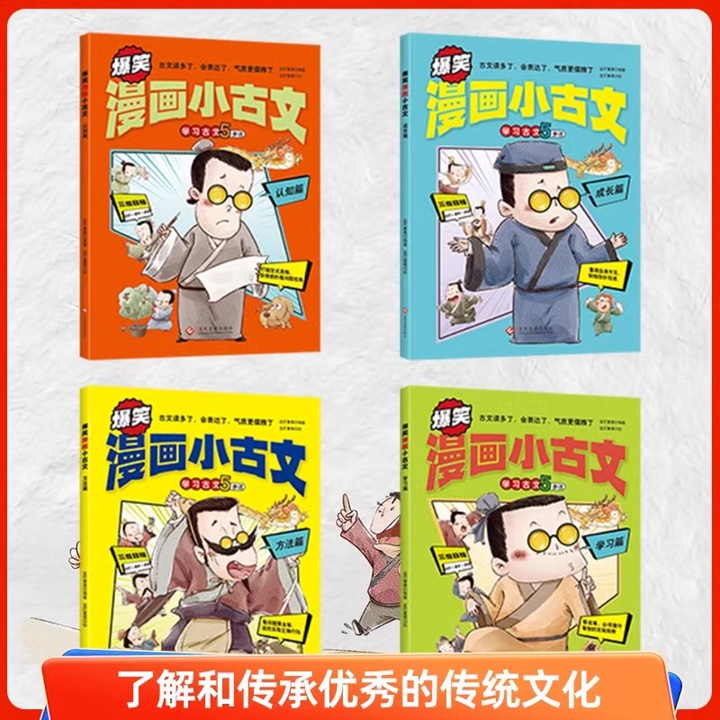 趣味爆笑 小古文必背文章精选青少年版 爆笑漫画小古文全4册正版 漫画书小学生二三四五六年级课外阅读趣味笑话文言文初级小学生版