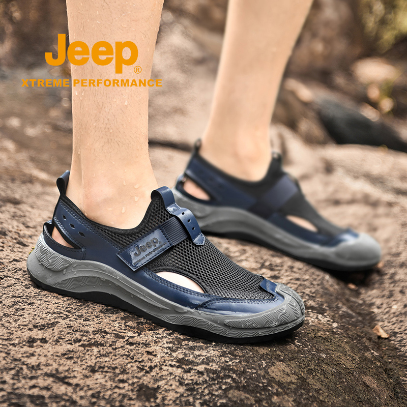 外穿防臭防滑全包开车户外沙滩溯溪涉水凉鞋 夏季 男 男款 钓鱼洞洞鞋