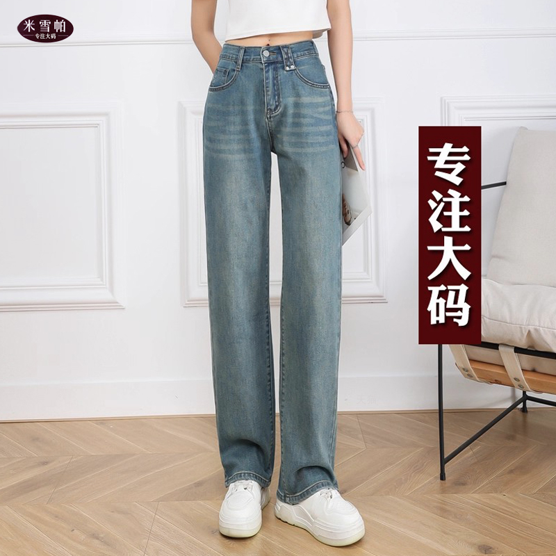 女冬40933286 100%棉复古高腰阔腿直筒牛仔裤 艾诺丝雅诗 建模裤