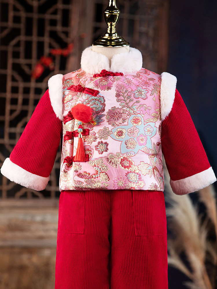 拜年服女童唐装 儿童周岁礼服加厚女宝新年衣服中国风过年 喜庆冬季