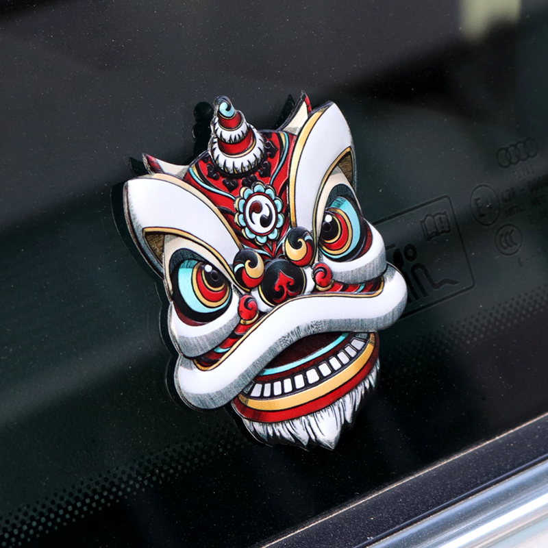 醒狮金属车标国潮舞狮车贴车身贴邮箱贴电动车摩托车装 饰贴纸套装