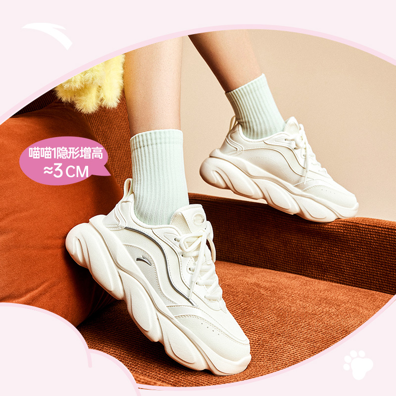 2025新款 喵喵鞋 小白鞋 厚底增高运动鞋 官方 安踏猫爪鞋 子老爹鞋 女鞋