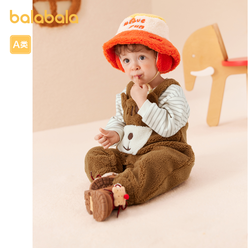 女童棉服宝宝背带裤 新款 两件套加绒 男童冬装 巴拉巴拉儿童套装