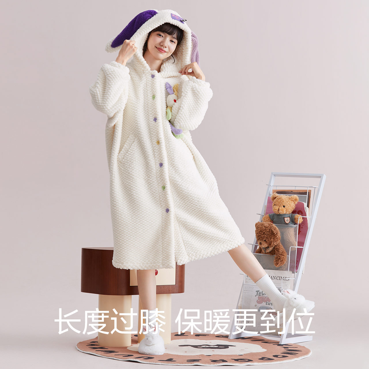 洁丽雅浴袍女秋冬2025新款 毛浴巾吸水速干珊瑚绒 睡袍洗澡可穿式