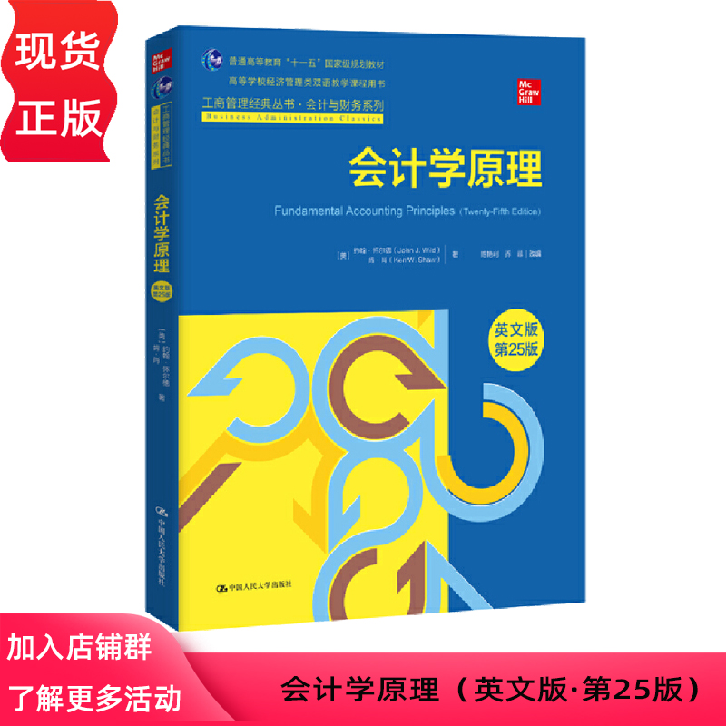 怀尔德 社 中文版 丛书 会计与财务系列 工商管理经典 第25版 第23版 中国人民大学出版 会计学原理 约翰 英文版