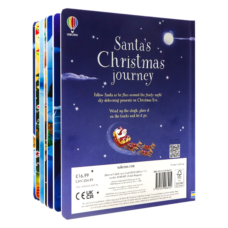Journey with 圣诞之旅英文原版 儿童读物轨道书扭动发条书圣诞节主题绘本 圣诞老人 Christmas Usborne圣诞轨道书Santa Wind