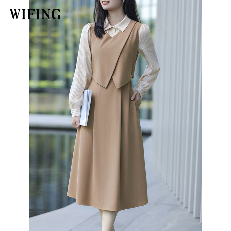 连衣裙 简约大气裙子干练利落气质无袖 晚白2025年秋新款 假两件时尚