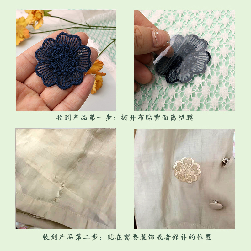 饰贴 真丝装 自粘小号蕾丝布贴刺绣补丁贴羽绒裙子补洞时尚 贴花个性
