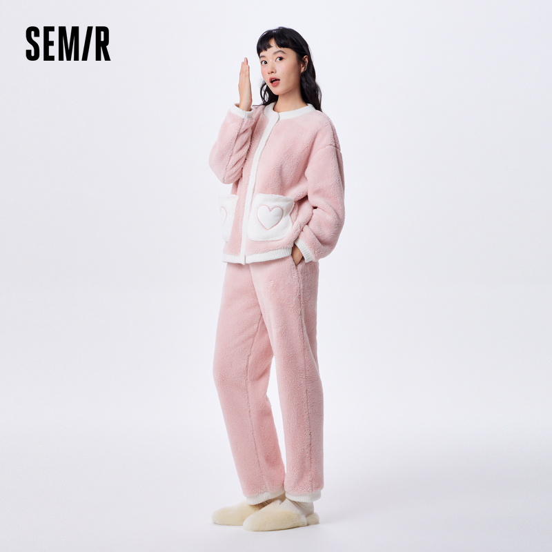 森马家居服女双面舒棉绒温暖甜美宽松舒适长袖 两件套柔软亲肤 长裤