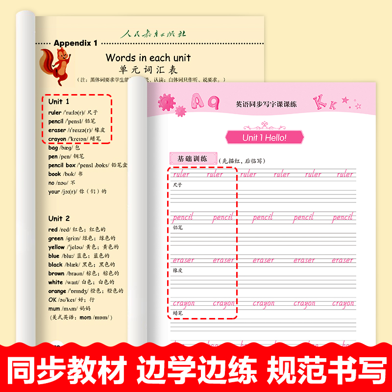 三年级上册英语同步练字帖人教版 小学3年级下学期英语单词练习字帖同步训练课本教材字母描红书写字帖小学生国标体写字课课练 pep