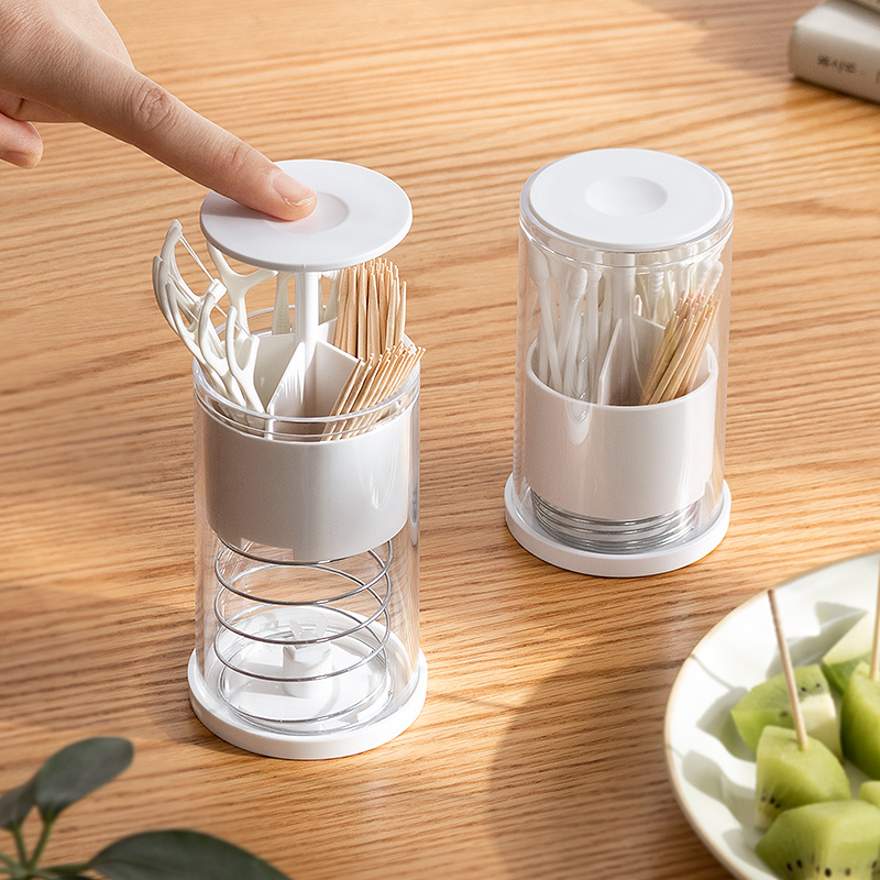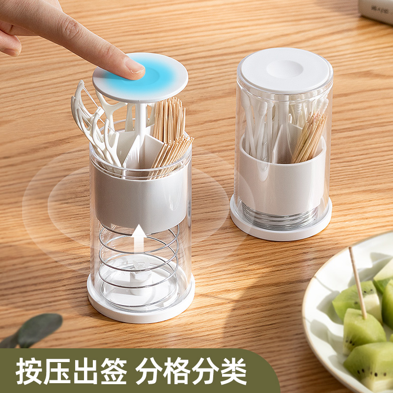 按压式 牙线盒家用创意高级自动弹出牙签筒棉棒牙签盒高颜值棉签盒