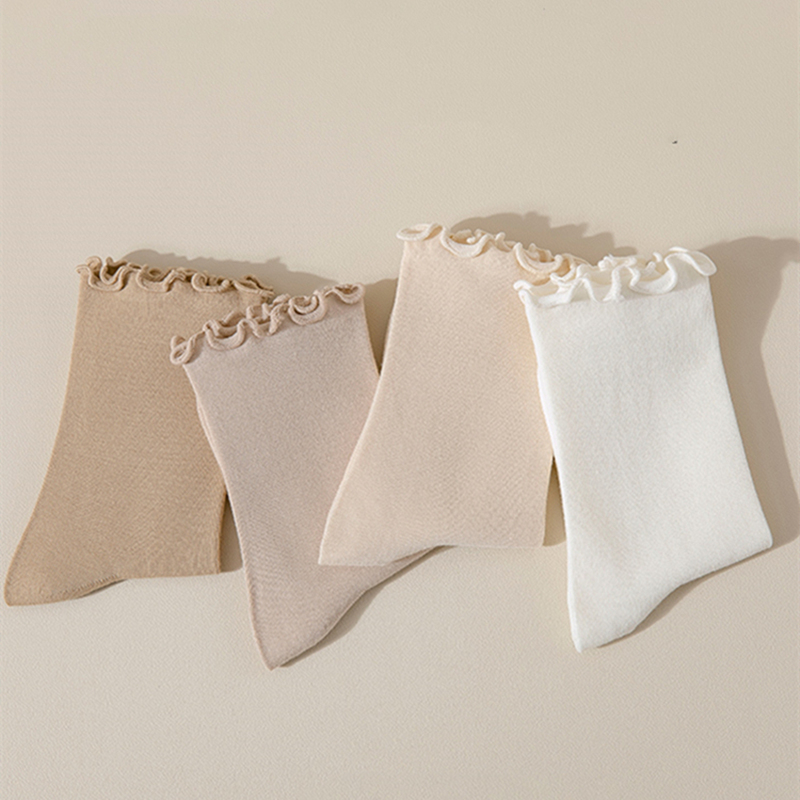木耳边无骨可爱甜美学院风韩式 中筒堆堆袜子 潮流外穿搭配乐福鞋