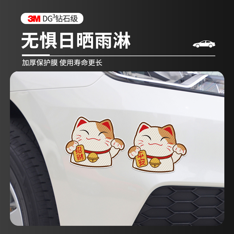 3M反光贴汽车身贴纸电动车装 饰头盔创意划痕遮挡摩托车防水招财猫