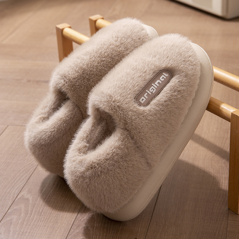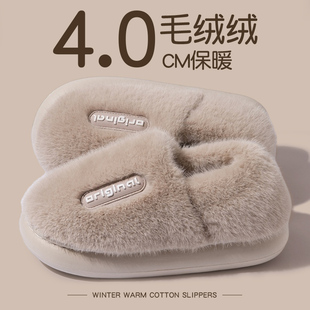 加绒加厚室内家居毛绒保暖情侣棉鞋 冬季 男 女士2025新款 包跟棉拖鞋