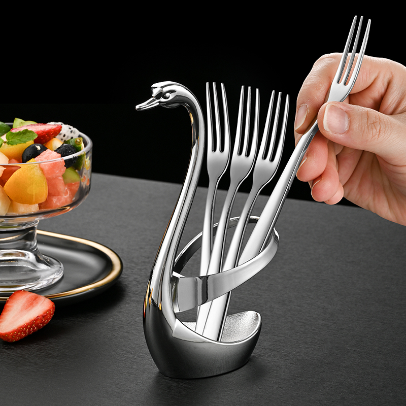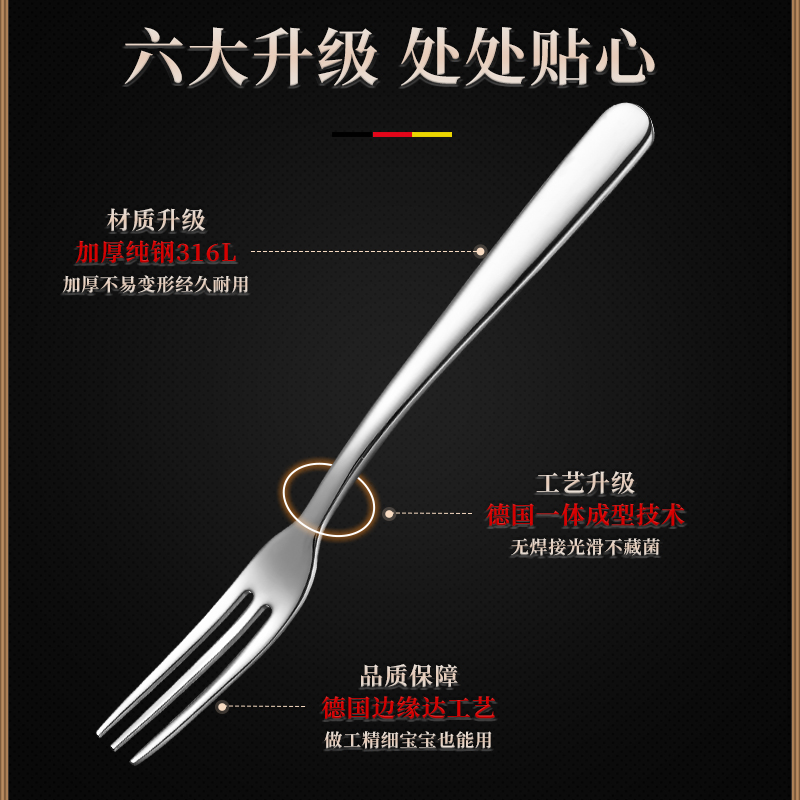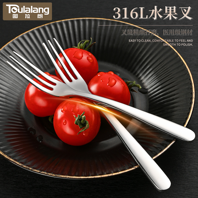 水果叉316不锈钢小叉子家用三齿沙拉叉5支304全钢甜品蛋糕叉套装