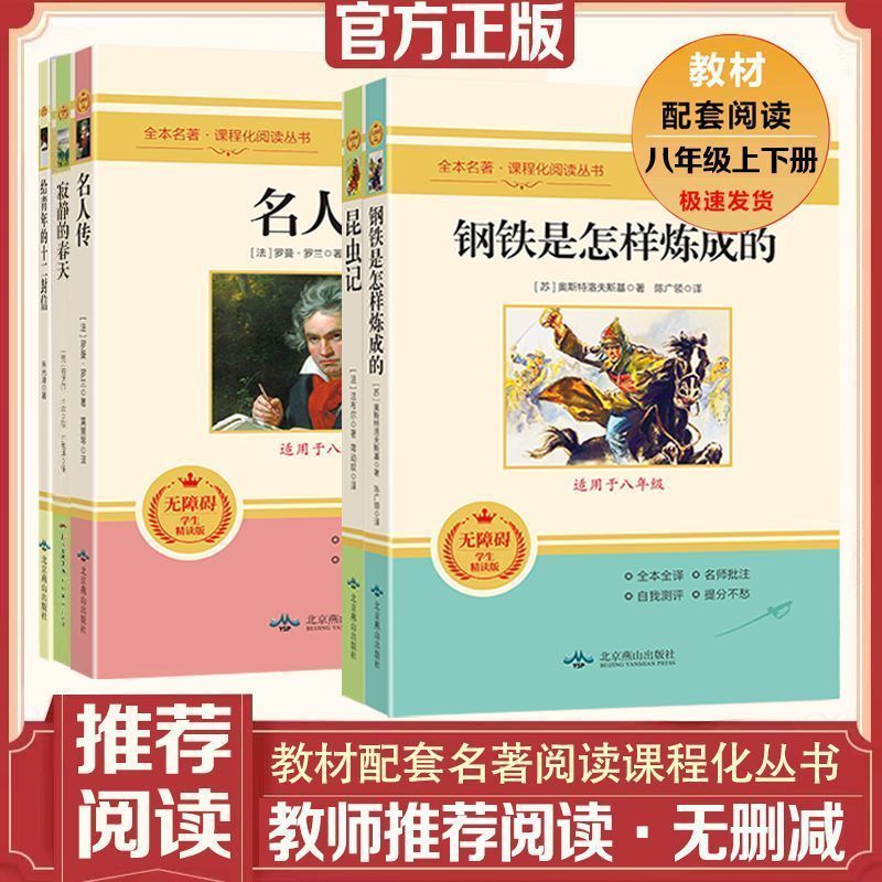 常谈朱自清西行漫记人民教育出版 经典 社初中语文课外阅读 八年级上下册必读书钢铁是怎样炼成 红岩和红星照耀中国和昆虫记原著正版