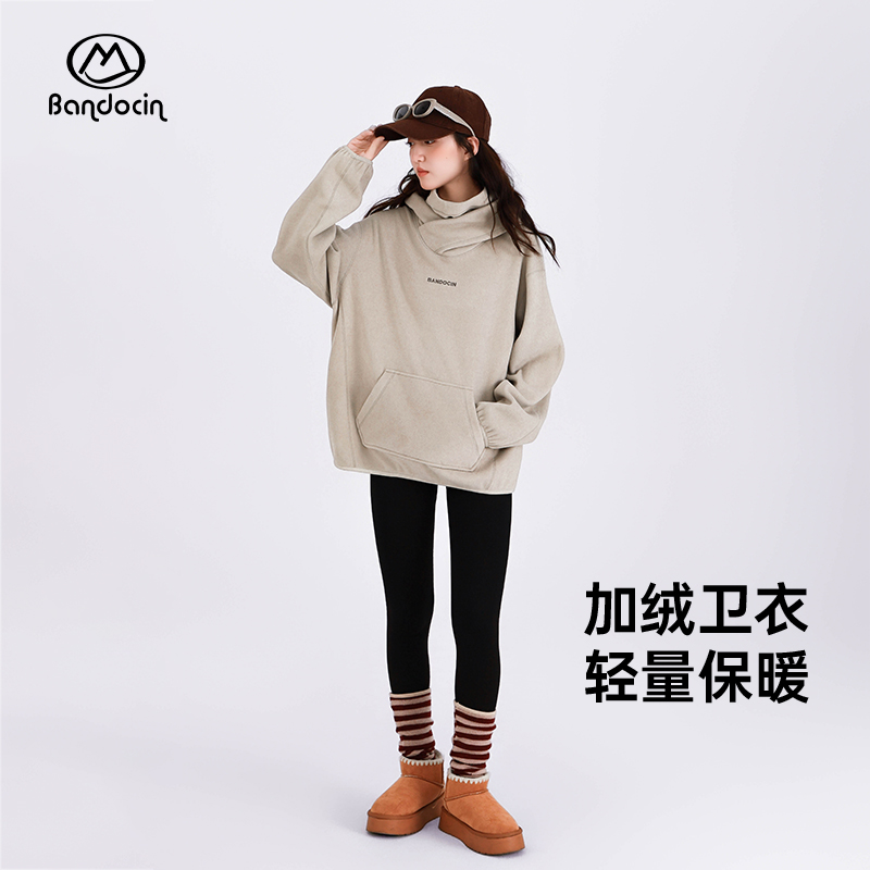 加厚运动上衣 女孩冬季 半度闲女大童加绒连帽卫衣洋气秋冬装 25新款