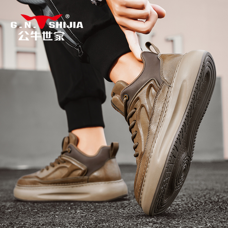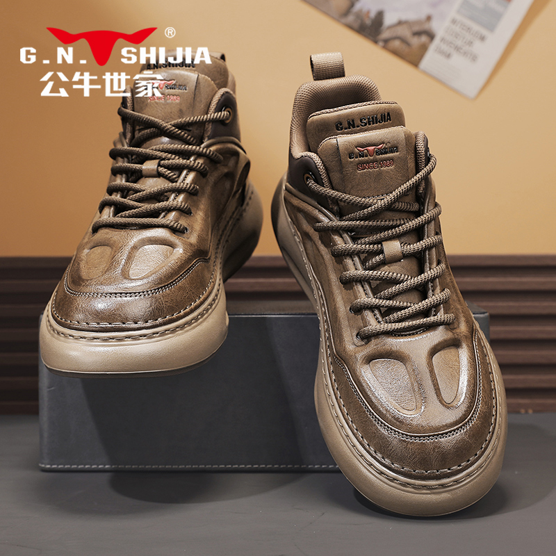 增高厚底潮鞋 公牛世家高帮鞋 休闲运动中帮老爹男鞋 秋季 男2025新款