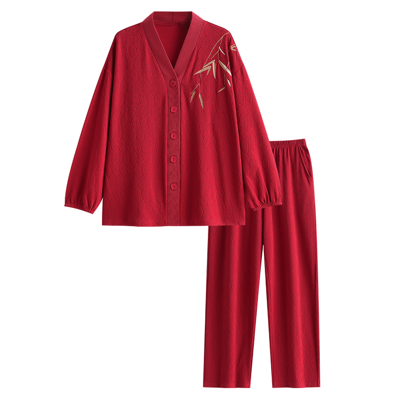 国风家居服情侣结婚新婚套装 红色本命年中式 男 长袖 女士睡衣春秋款