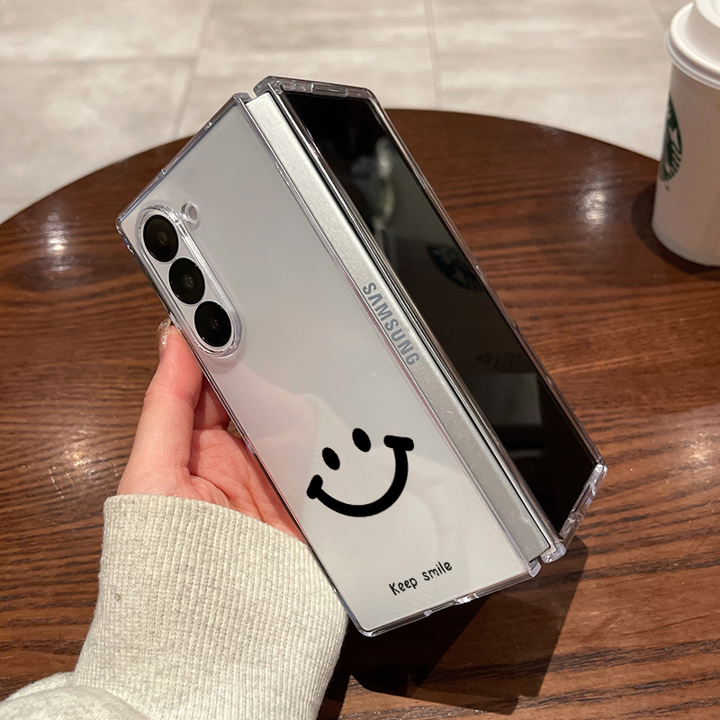 适用三星fold7手机壳fold6新款 硬外壳保护套 fold5大折叠屏zfold4翻盖fold3超薄透明英文笑脸全包防摔男女款