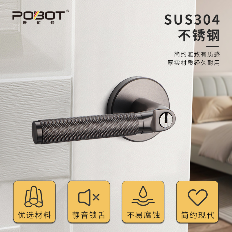 普佰特轻奢房门锁卧室静音执手锁室内金色单舌门把手可替换球形锁