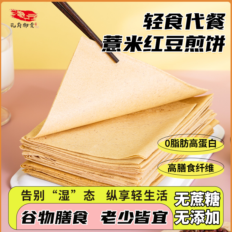 孔府御贡薏米红豆煎饼无蔗糖粗粮糖人代餐饱腹0脂卡早餐即食健康
