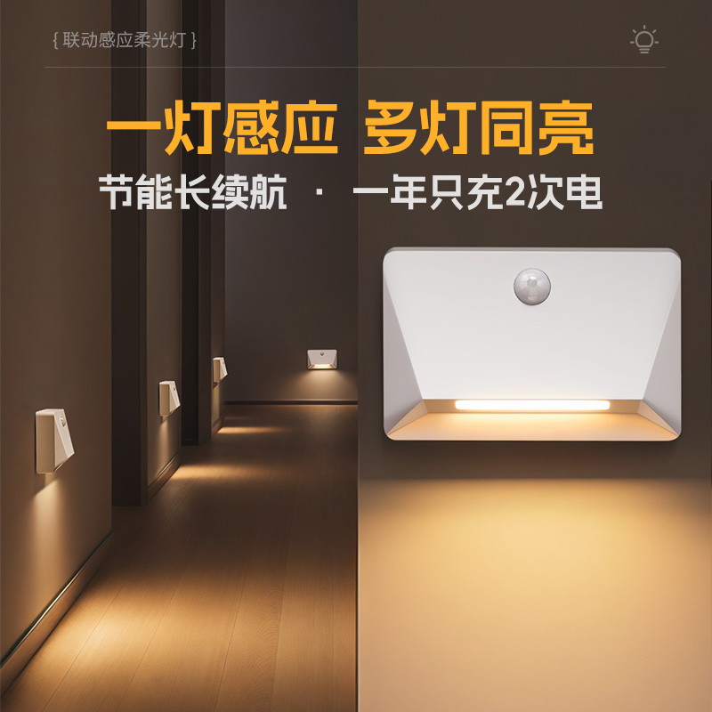 2025新款 人体感应灯夜间自动亮灯家用走廊过道智能声控充电小夜灯