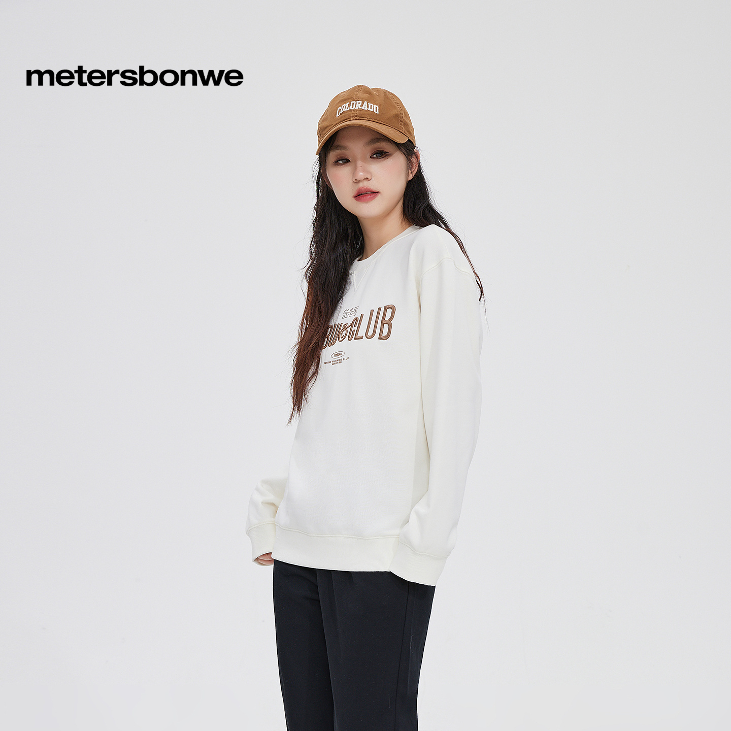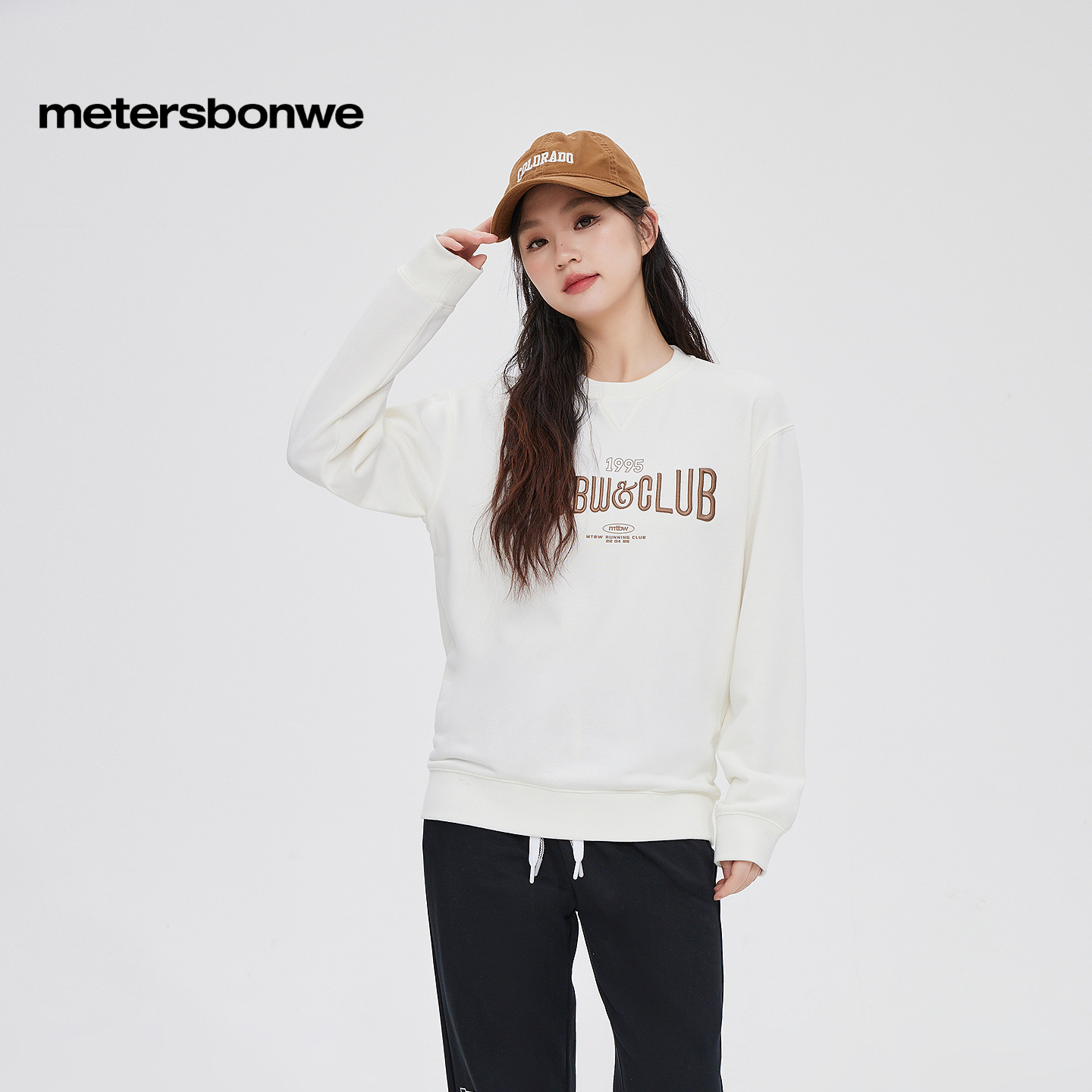 美特斯邦威圆领卫衣女春秋时尚 潮流慵懒风上衣 刺绣套头舒适中长款