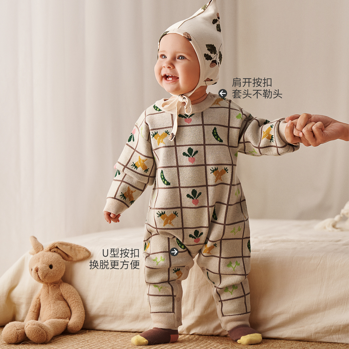 aqpa爱帕婴儿衣服针织连体衣秋冬宝宝毛衫 哈衣保暖外出服洋气可爱
