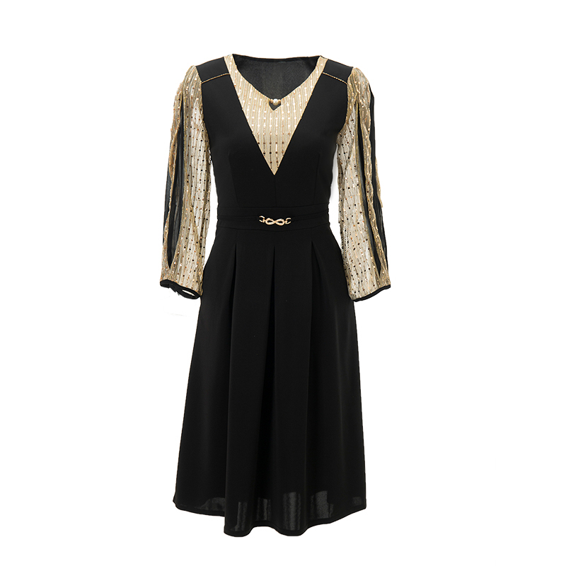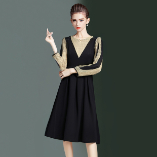 显瘦秋冬打底职场连衣裙 纯黑色弹力醋酸修身 〈面料升级〉经典 款