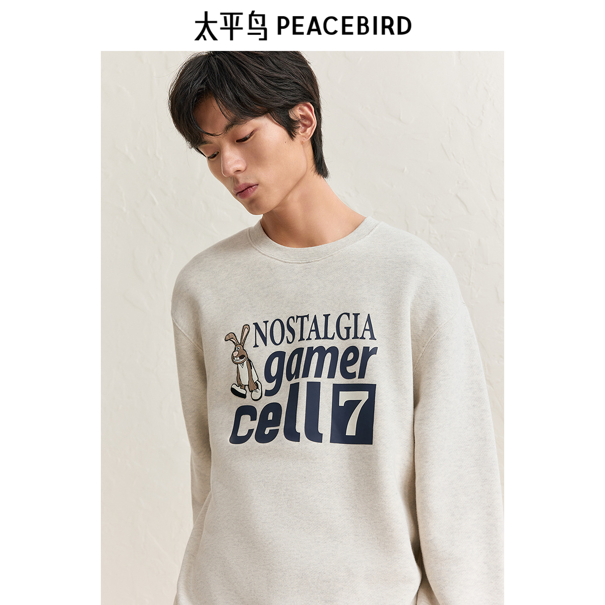 套头情侣上衣潮 时尚 太平鸟男装 圆领加绒兔子图案卫衣24冬新款
