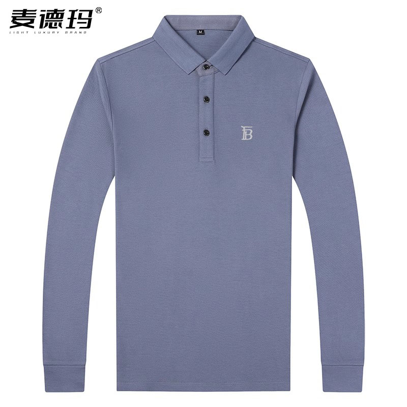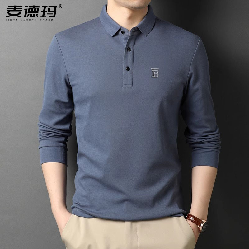 翻领中年商务宽松纯色高端POLO衫 t恤男士 大牌长袖 2024春秋季