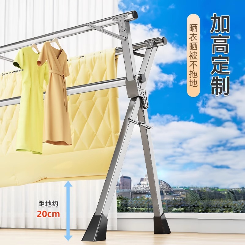 伸缩衣架阳台晾衣晾晒落地家用晾衣架室内卧室置地 升降晾晒衣架