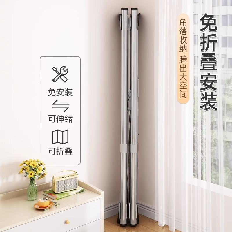 顶天立地晾衣架卧室阳台置地式 单杆伸缩折叠升降挂晾晒收纳架加厚