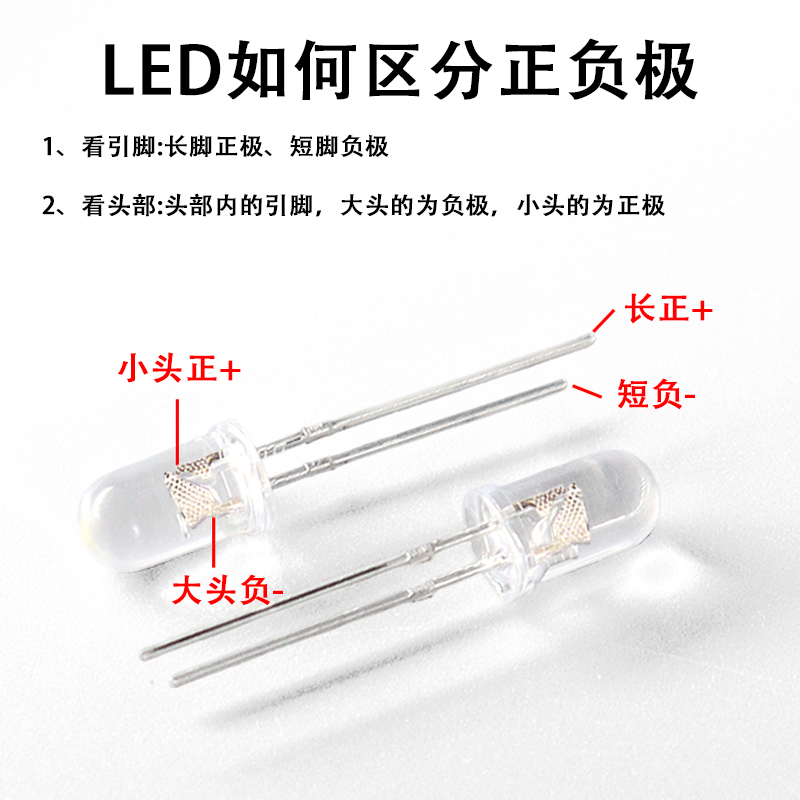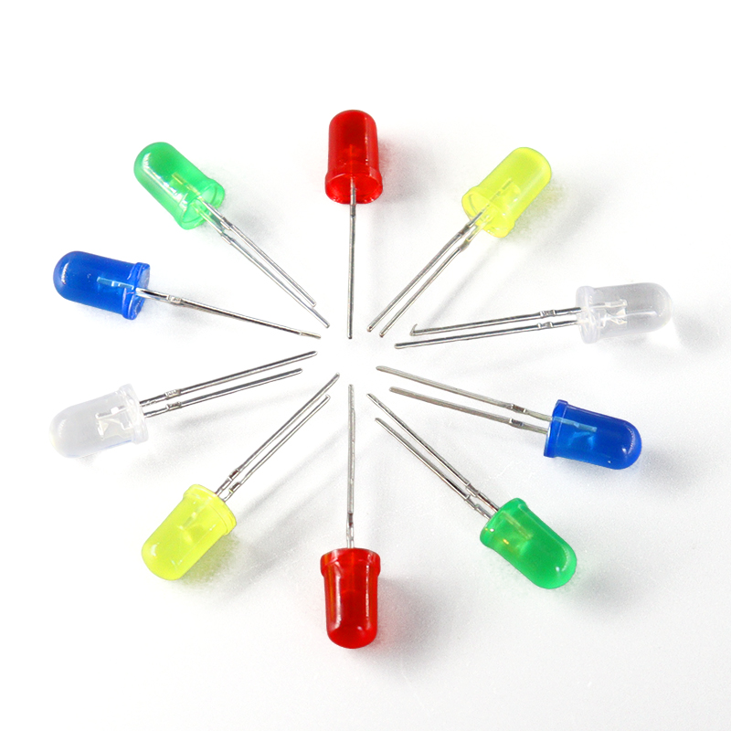 5mm发光二极管草帽LED灯珠仪表白发红黄蓝绿共阳阴紫色七彩红发绿