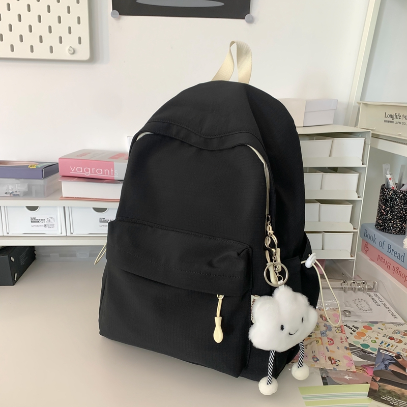 简约书包女中学生纯色百搭双肩包女大学生中小型休闲旅游背包轻便