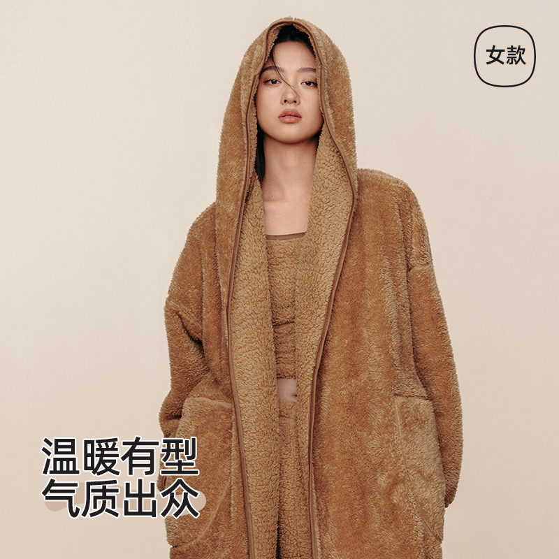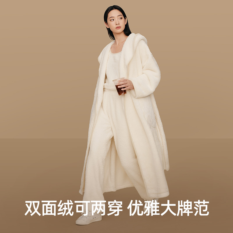 幸棉睡衣女三件套冬季 情侣双面绒高级感居家保暖加厚男家居服套装